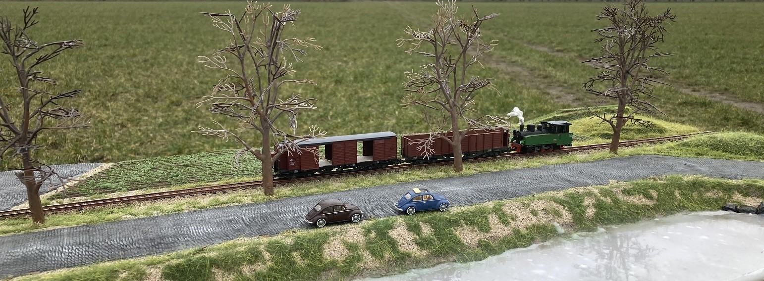 Tanker og ideer til bygning af smalsporsbane på moduler, vist i billeder og tekst.